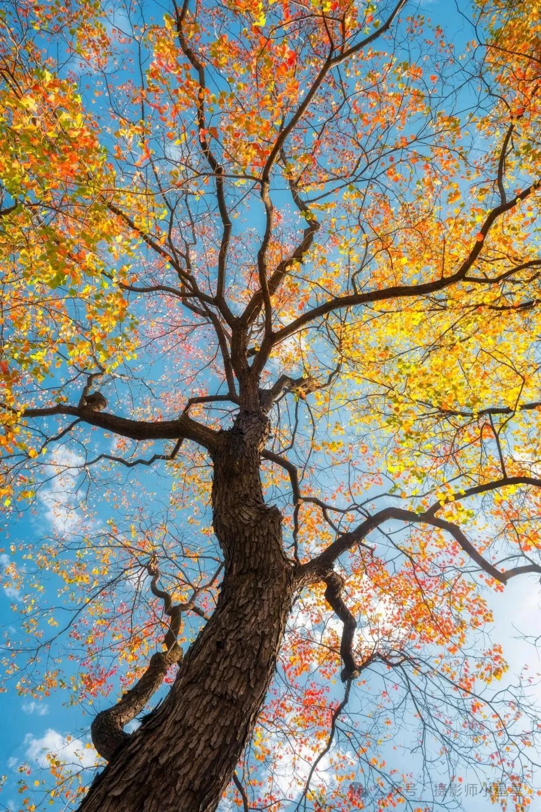 林间的树木也会换上了五彩的衣裳,红的、黄的、绿的交织着,像是调色盘上的颜料自由流淌。