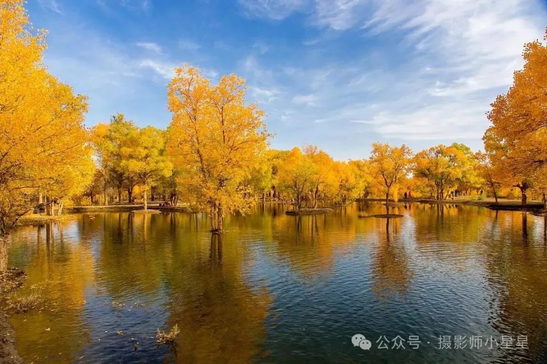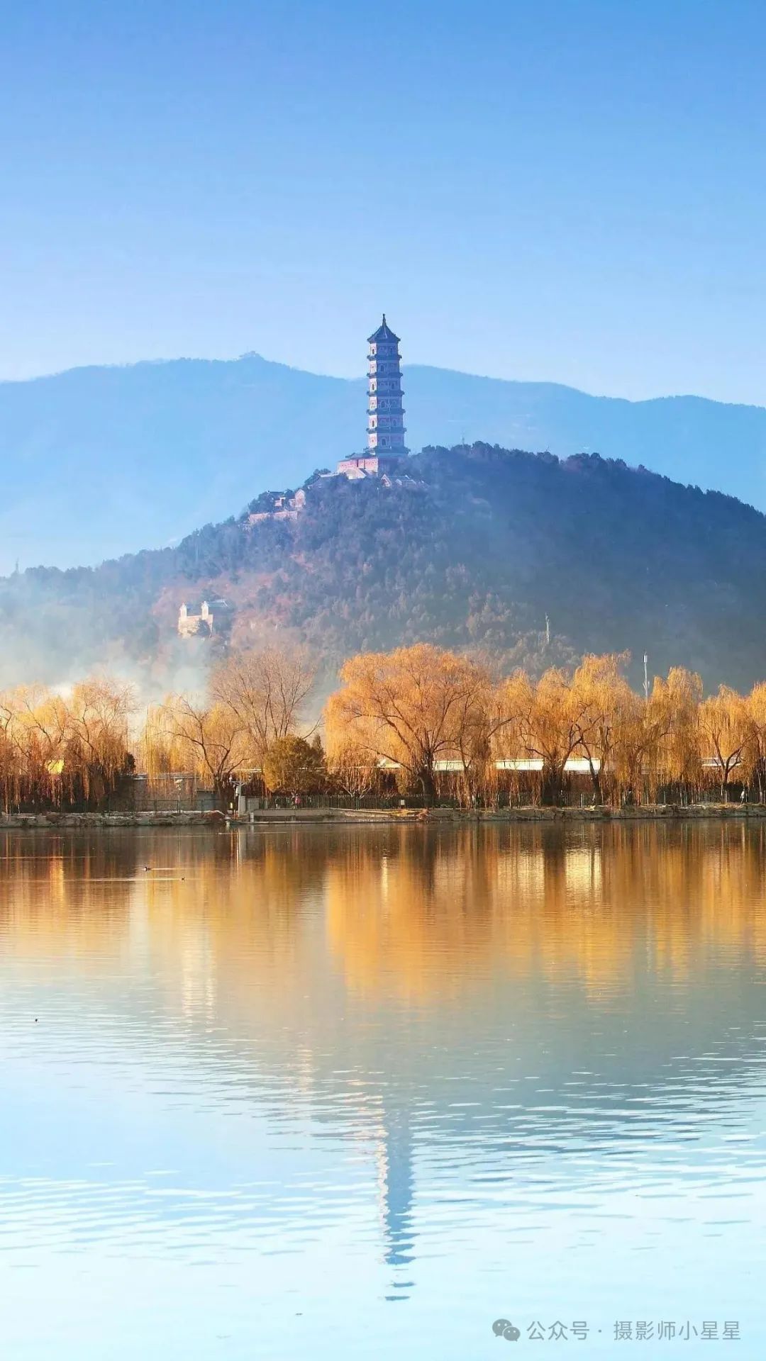 秋色的倒影交织,绘出一幅幅动态的画卷。飞鸟掠过湖面,投影翩跹,似乎在与自己的倒影起舞,增添了一抹生动与诗意。