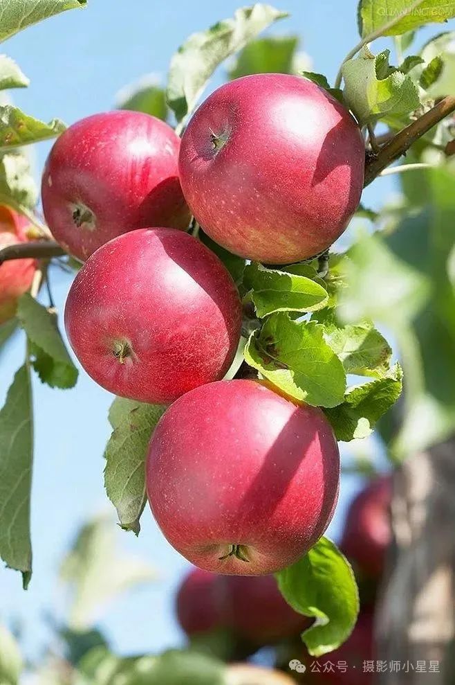 看看这映入眼帘的是苹果,它们挂在枝头,像红宝石一样熠熠生辉。每一个都仿佛精心雕琢过,圆润饱满,散发着诱人的光泽。轻风拂过,它们轻轻摇曳,仿佛在向人们展示其无可挑剔的成熟。