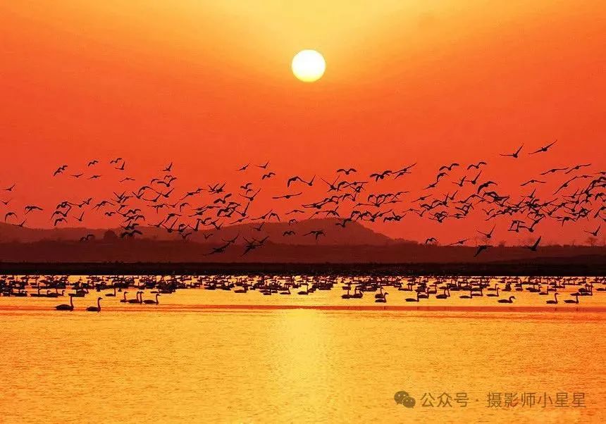 鸟儿开始归巢,它们在天空划过一道道优雅的弧线,与这宁静的景象完美融合。秋天的夕阳,宁静又绚烂,多彩又美好。