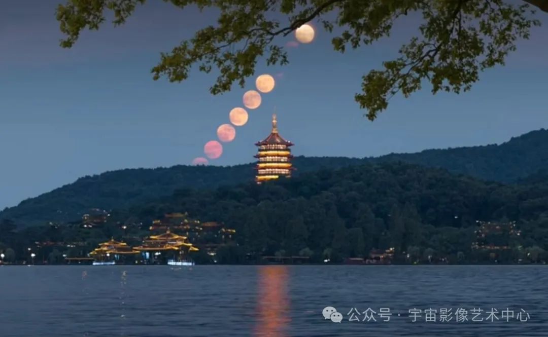 (六)、拍摄月亮升起轨迹的画面,每隔3分钟拍摄一张,然后堆栈。