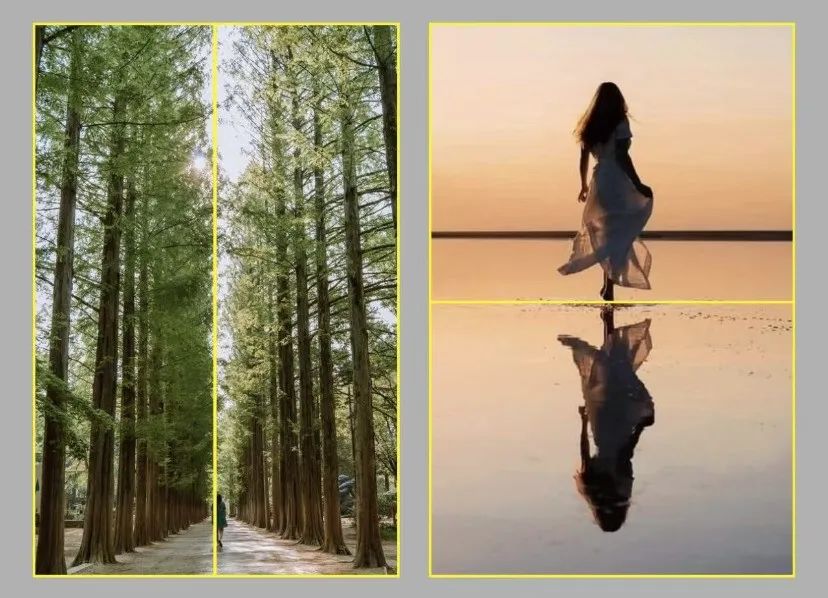 - 将画面分为三个部分,通常是水平或垂直分隔,用来安排主要元素,创造平衡感吸引注意