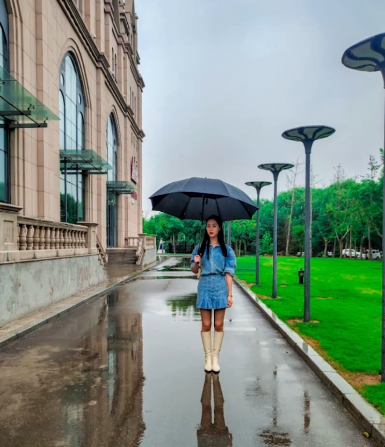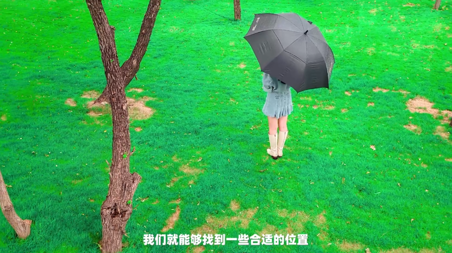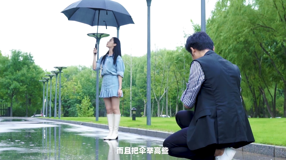 但是只要把相机朝向地面,把伞举得再高一些,这样拍出来就非常美了。