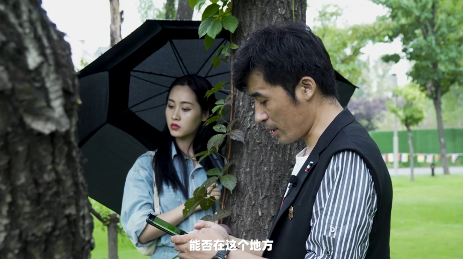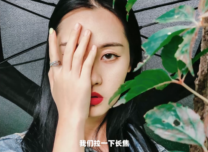 我们现在是用的一倍镜头,我们拉一下长焦,雨伞非常适合衬托这种感觉,可以尝试不同的构图,甚至于可以用横构图,这样的话可以把树木留取一部分。
