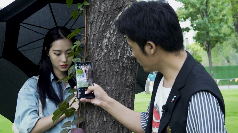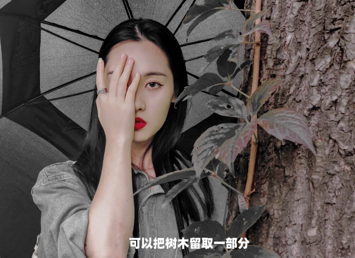 我们现在来到树下,在树下或者是树的旁边,我们会看到一些树叶,树叶能够帮我们拍摄一些有情绪感的图片。