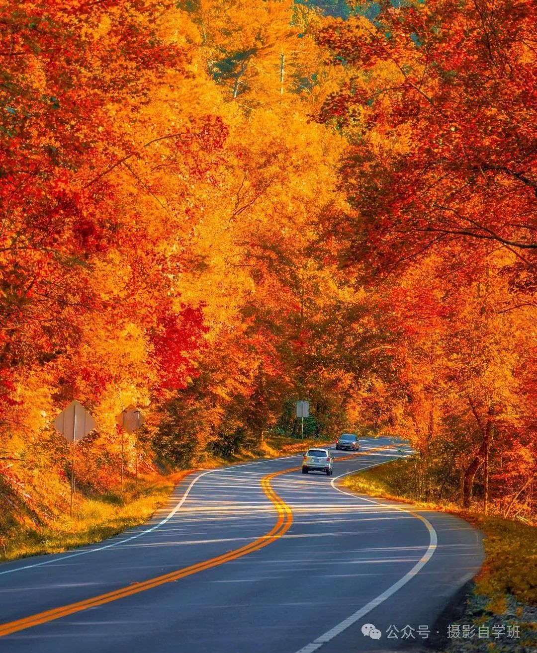 秋天的森林,树叶五彩斑斓,橙色与红色的树叶把照片氛围感拉满。拍摄时,将手机置于车辆行驶的前方,安全稳定地停在路边,在路边,利用道路的延伸感引导视线,同时捕捉树叶的鲜艳色彩与蓝天的宁静。通过调整手机的曝光和白平衡,使色彩更加鲜明,让照片充满秋日的热烈与活力。安全第一。