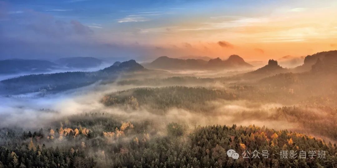 选择清晨或傍晚时分,当天空呈现出蓝橙粉渐变的温柔色彩,利用手机相机的长焦或广角功能,将镜头对准被薄雾轻抚的森林。调整曝光度,让森林的深绿与金黄层次分明,同时让远处起伏的山丘作为背景,增加画面的深度与立体感。记得寻找光线的方向,利用自然光为画面增添一抹神秘与温暖。