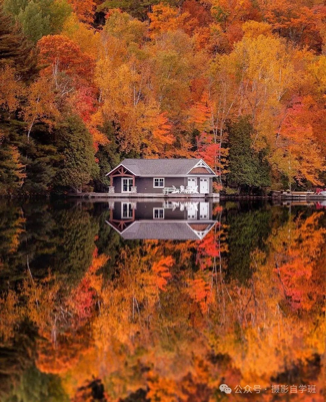 秋天的景色中,建筑元素往往能增添一份人文气息。拍摄时,将手机对准被秋天树木包围的小屋或建筑,捕捉其与周围环境的和谐共生。注意调整手机的构图和角度,让小屋成为画面的视觉中心,同时利用树木的色彩和形状来衬托小屋的宁静与美丽。