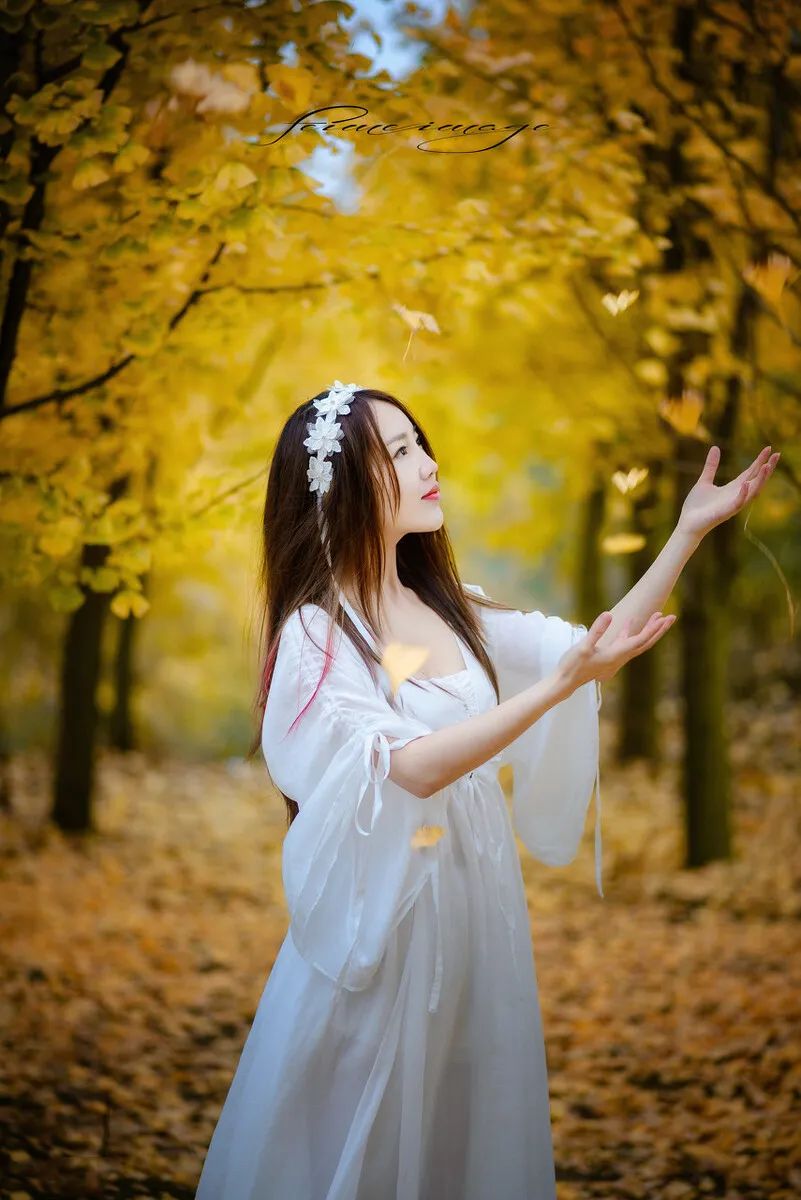 秋天拍人像,既要拍摄出金色的秋意,又要表现模特的美丽。