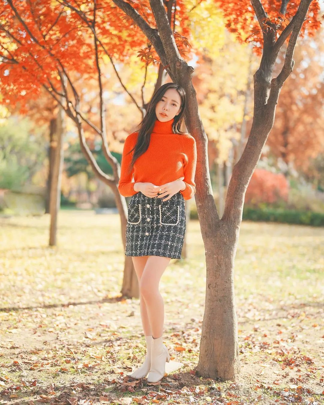 还可以在小公园或者小区当中找到一棵树,你穿着红色的上衣,穿着没有莫过膝盖的短裙,把头依靠在树干上,两条腿一前一后,前腿弯曲。两只手放到胸下肚子前,既能够挡住肚子显瘦,还能够让姿势更加优雅。