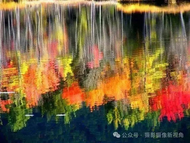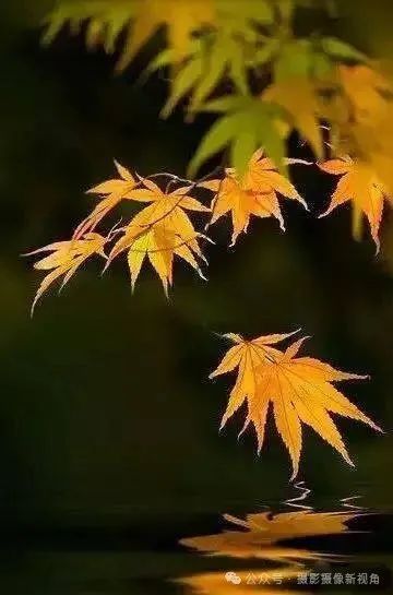 秋天的色彩丰富多彩,学会运用色彩对比来增强画面的视觉冲击力。比如,将金黄色的叶子与深蓝色的天空或暗色的树干相结合,形成鲜明的对比;或是利用长焦镜头,将不同色彩的落叶聚集在同一画面中,展现秋天的斑斓多姿。黑背景使主体更突出,倒影让画面上下呼应。