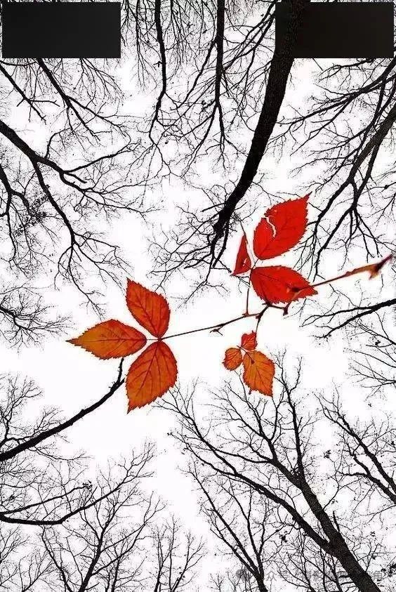 10、鲜红的叶子加上创意的广角仰拍,令枯燥的环境充满生气。