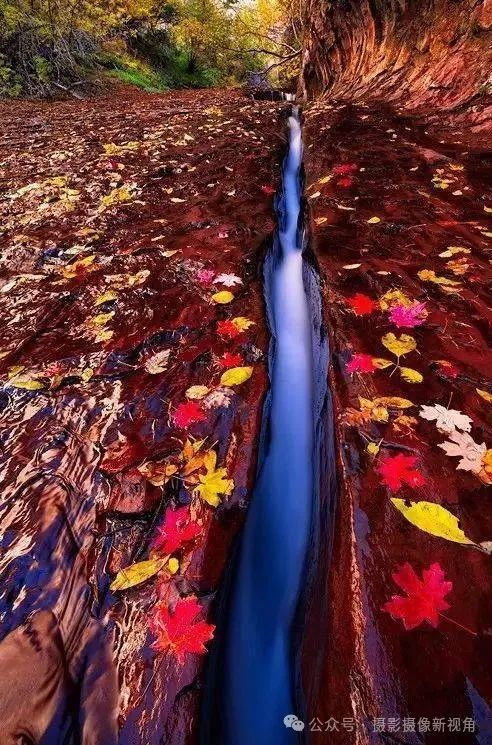无论是仰拍还是俯拍,都能带来全新的视觉体验。仰拍能展现树木的挺拔与天空的辽阔,而俯拍则能捕捉落叶铺满的地面,形成层次分明的色彩对比。此外,尝试一些非常规角度,如低角度拍摄,利用流水或地面的反光,增添画面的趣味性和深度。
