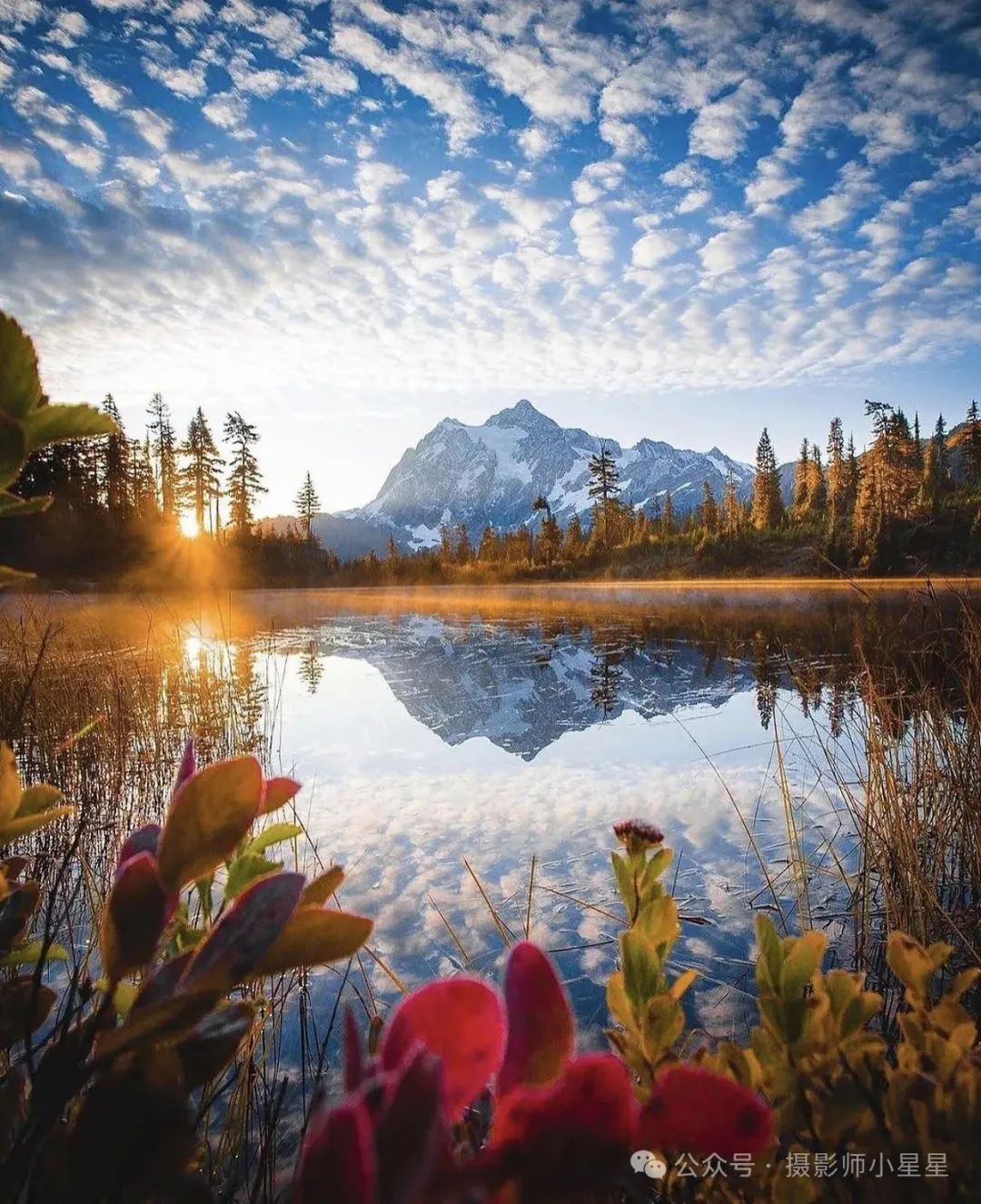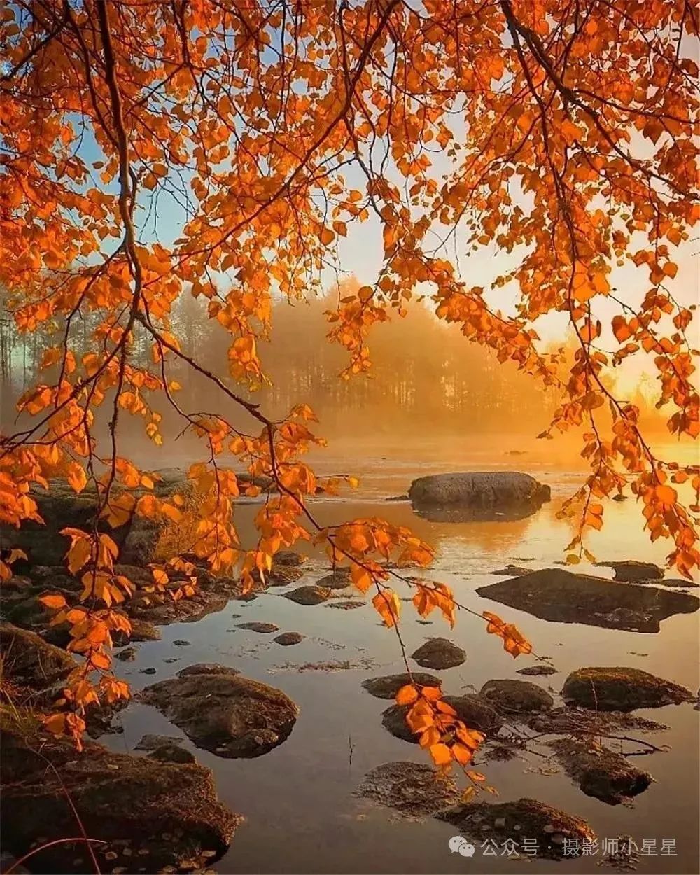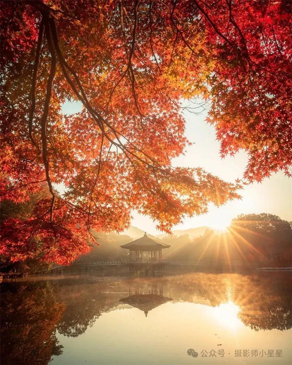 前景元素可以起到引导观众视线的作用。例如,如果在镜头前加入红叶和枝条作为前景,那么枝条就会像线一样引导观众的视线从画面的下方向上移动,从而使画面的构图更加动态和有趣。