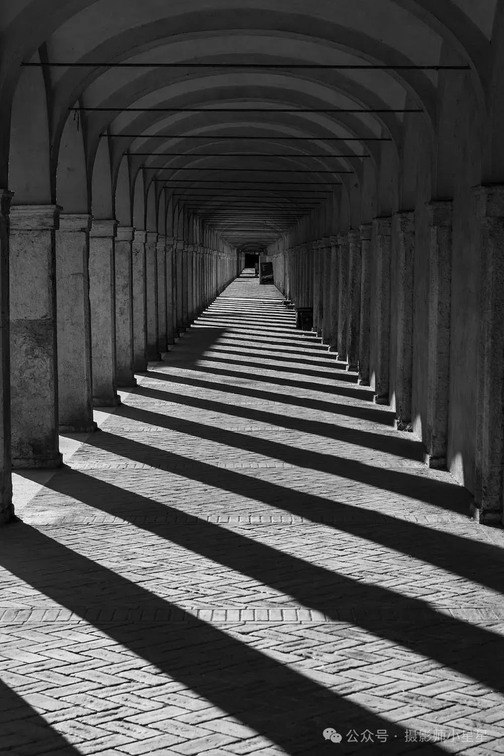 线条在画面中的排列和分布能够形成一种节奏感。重复的线条,如走廊柱子、铁路轨道、排成一排的树木,可以创造出一种韵律,这种韵律能够给观众带来视觉上的愉悦。线条的节奏感可以是对称的、渐变的或交错的,每种排列方式都能带来不同的视觉效果。通过对线条的巧妙运用,摄影师能够创造出既有秩序感又不失活泼的画面,使照片更具艺术性。