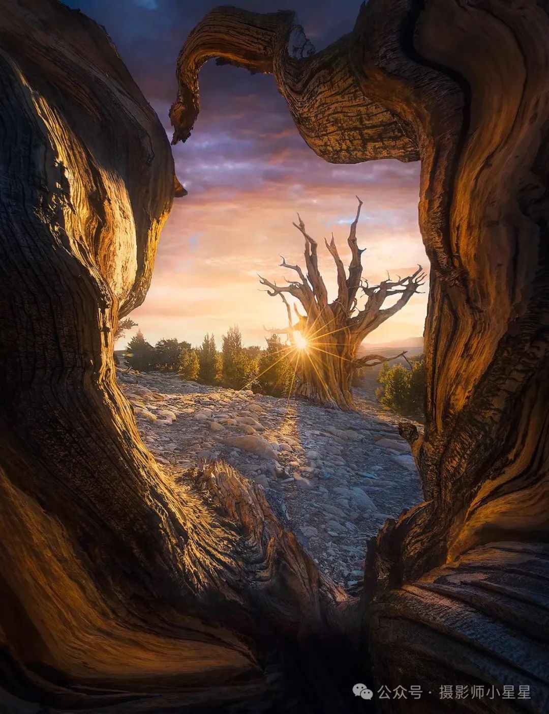 当金色的阳光洒在大地上,我们选择弯曲的树干作为前景框架,将远处那棵孤独的大树纳入镜头,再加上放射线的阳光,就构成一幅富有生机与希望的画面。在这里,加法是创造层次,是丰富故事的手法。