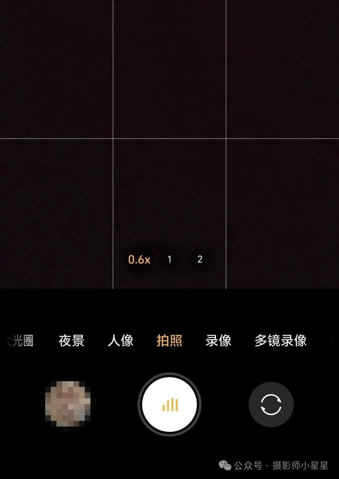 将手机相机的拍摄焦距调整为1X以下,比如0.6X或者0.5X,则手机广角功能就被打开了。