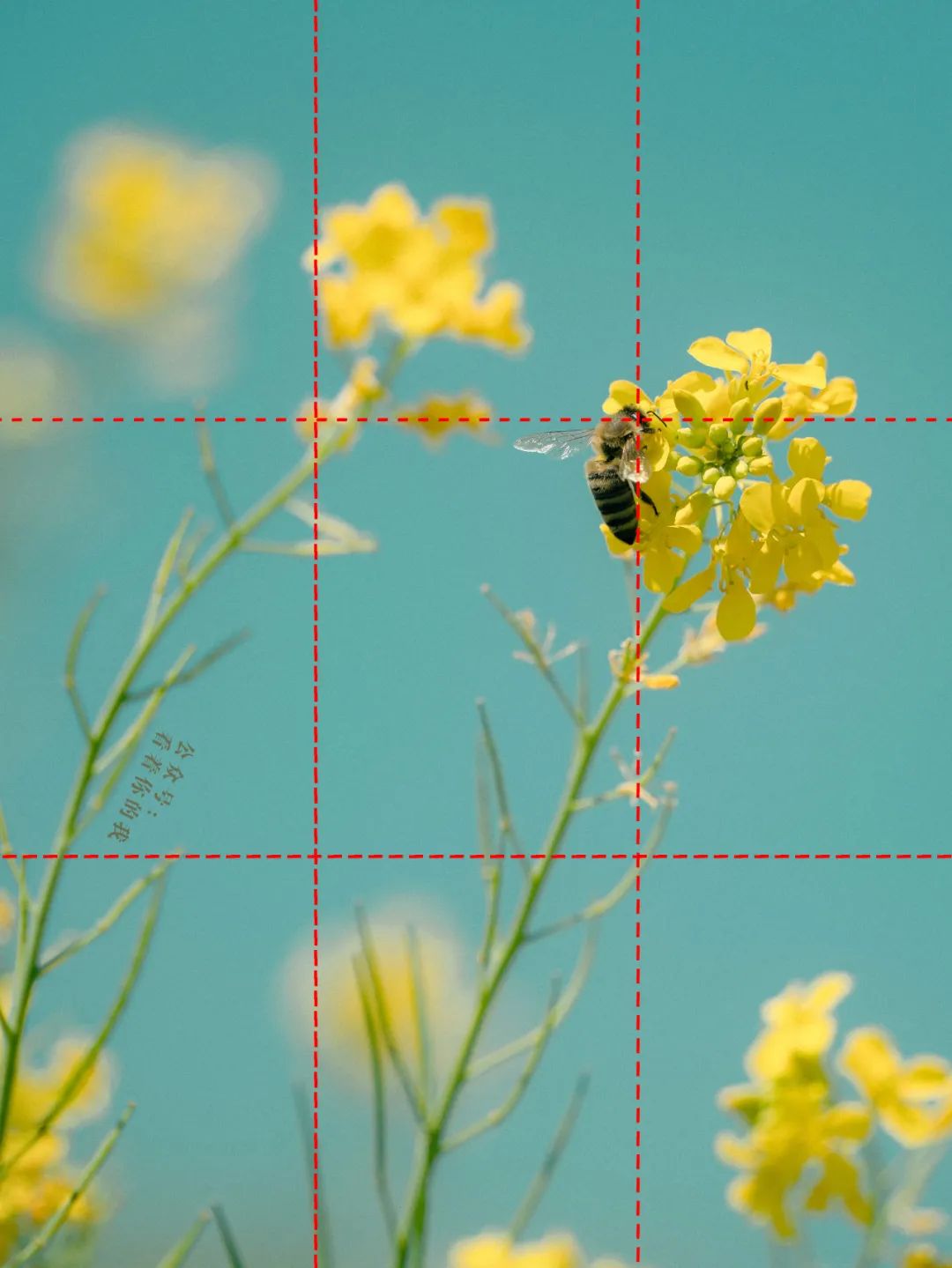 这种构图当时是我们经常使用的,具体操作就是将我们的画面在水平和竖直方向上都均匀地分为三份,在线段的交叉点上或者交叉线上放置我们画面的主体,此处的主体会让画面更加地和谐平衡。