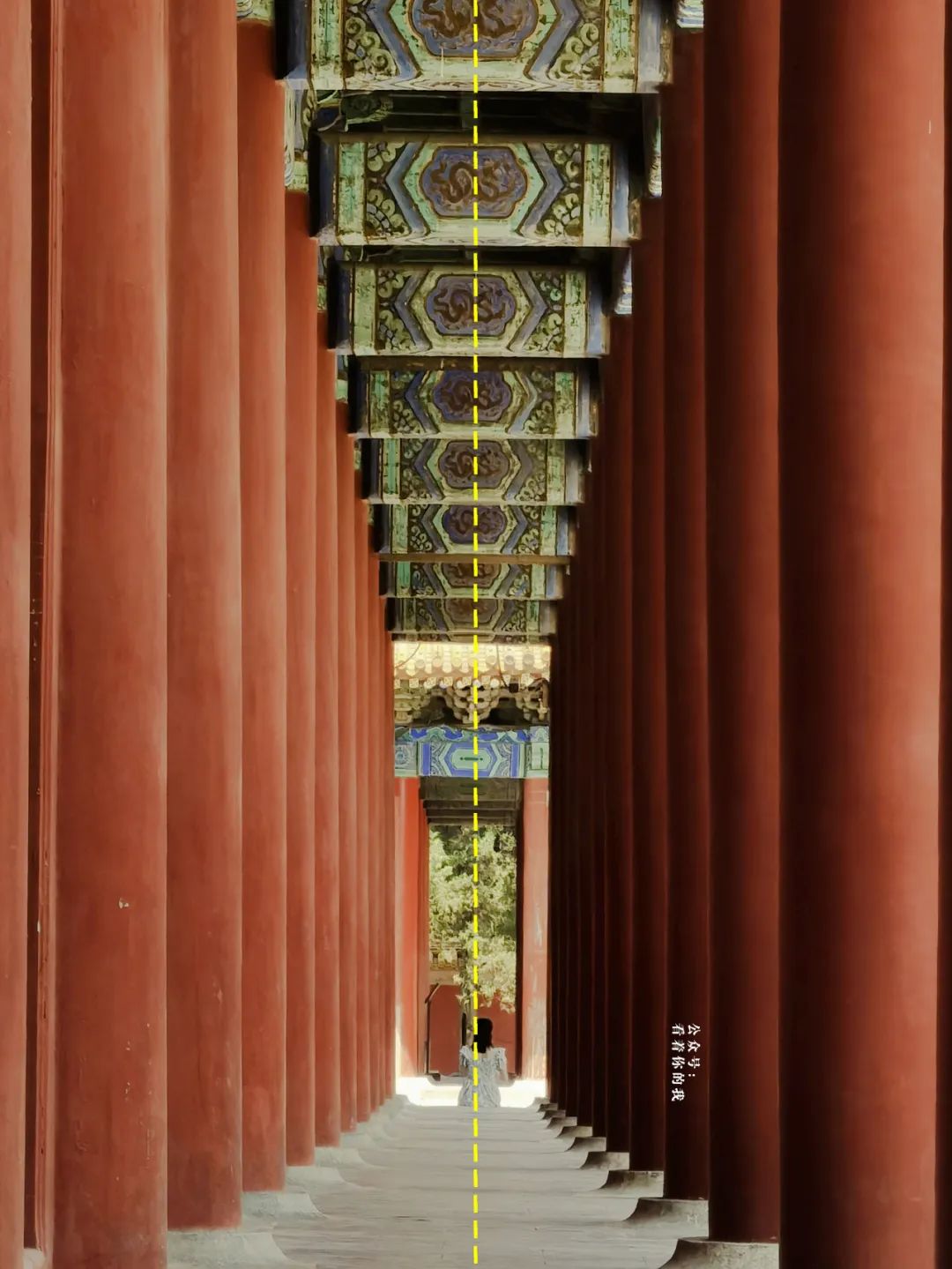 是画面中的事物会呈现左右或者上下的对称分布的一种构图方式。一般常用来拍摄倒影、古代建筑等,会有一种规整有序的画面感。