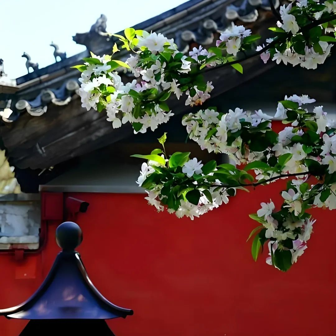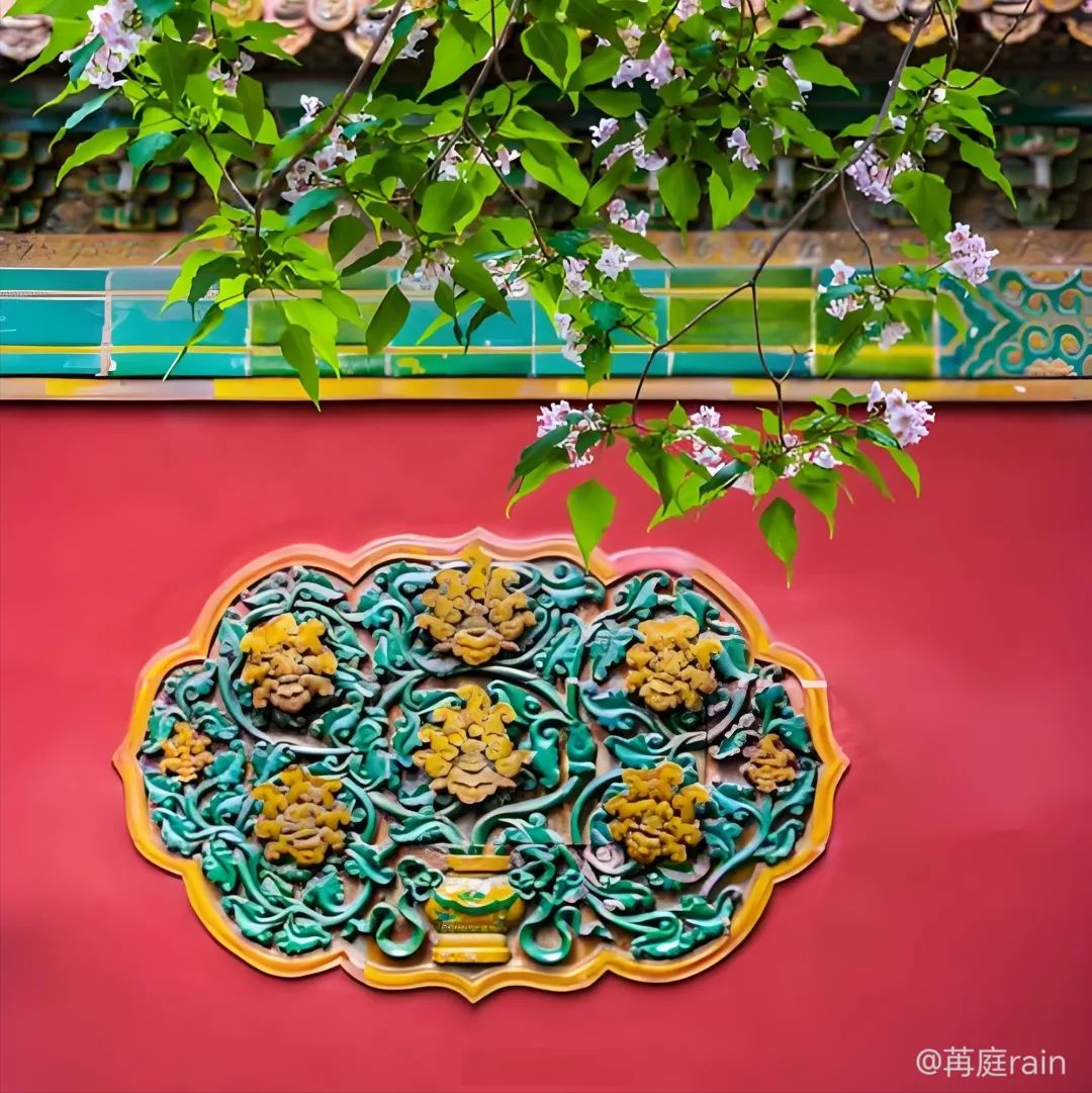 很多人拍无数遍的故宫,如果拍摄大场景很难拍出个性,如下图:恰好院子里有两棵揪树,开了花,利用长焦拍下来,绿瓦红墙、雕刻壁画,在花树作为前景衬托下,一副富有中国风的画面就出来了。⬇️