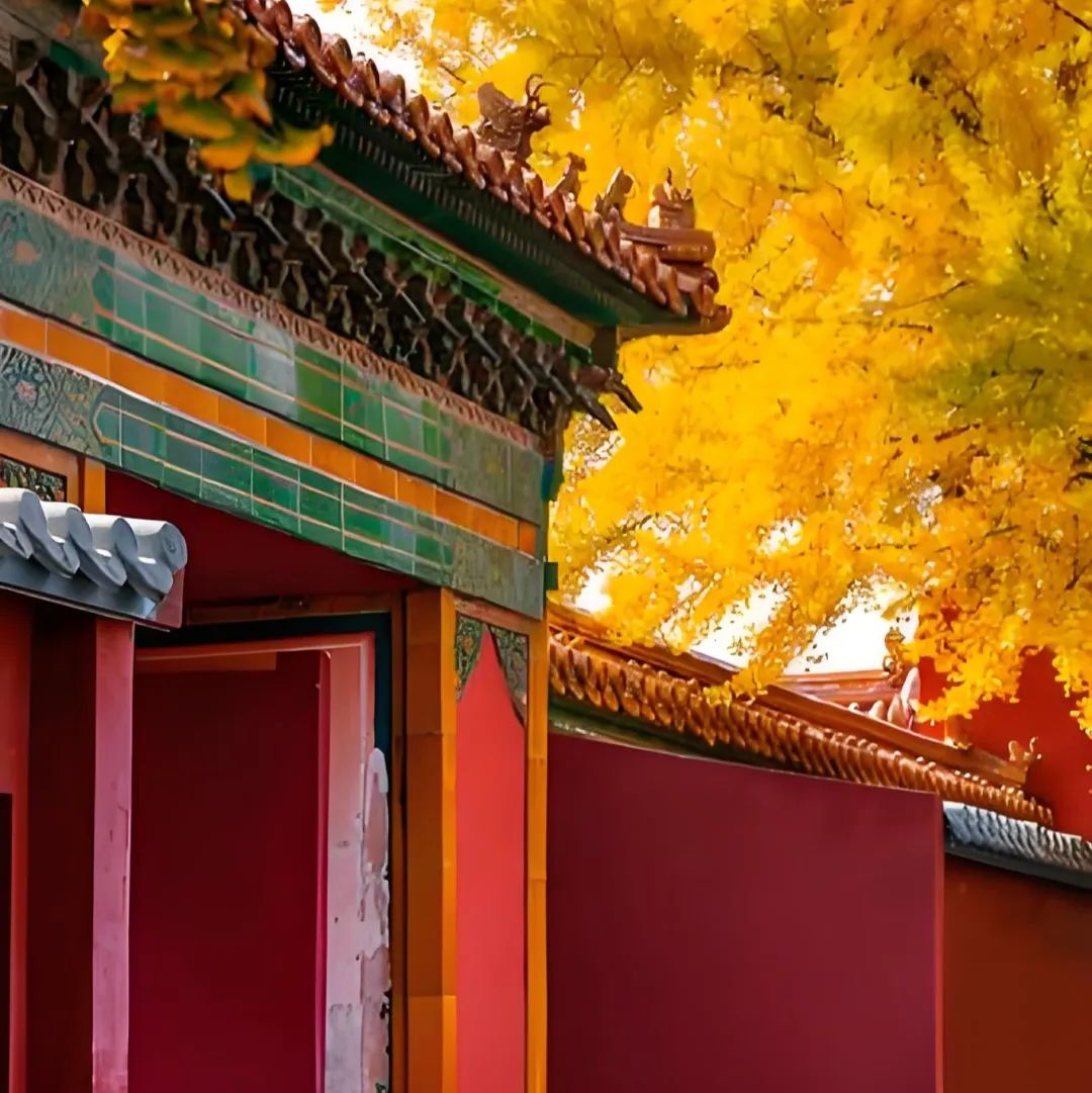 季节不同。树叶也变了颜色。银杏树叶泛着金黄,又赋予故宫另一番景像。⬇️